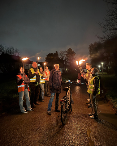 Obwohl zwischendurch Regen einsetzte, ließen sich die Kinder ihre Freude nicht nehmen. Mit Stolz präsentierten sie ihre selbstgebastelten Laternen, und gemeinsam mit den Fackeln zauberten sie trotz Pfützen und Matsch eine wunderschön stimmungsvolle Atmosphäre.